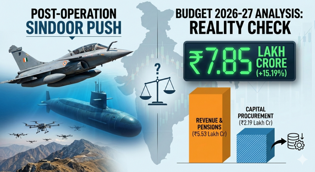 Introduction The Union Budget 2026-27 has allocated a historic Rs 7.85 lakh crore (approximately $93.5 billion) to the Ministry of Defence, marking a significant 15.19% increase over the previous year’s estimates (BE) of Rs 6.81 lakh crore. This allocation must […]