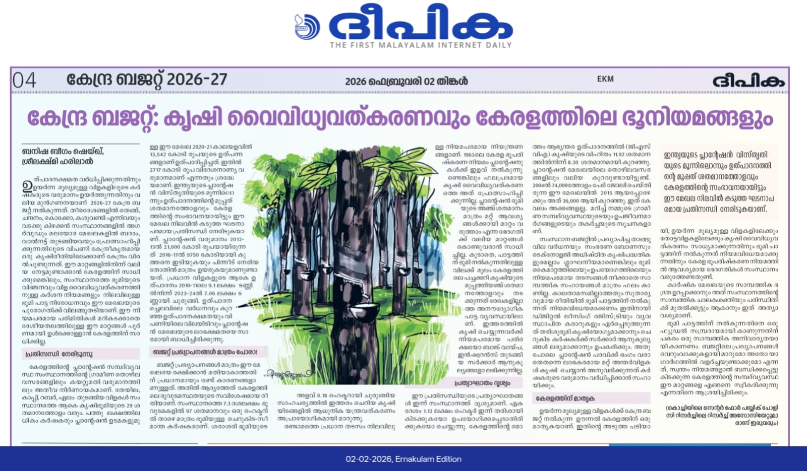 കേന്ദ്ര ബജറ്റ് കൃഷി വൈവിധ്യവൽക്കരണത്തിന് പ്രാധാന്യം നൽകുമ്പോൾ, കേരളത്തിലെ ഭൂനിയമങ്ങൾ വെല്ലുവിളിയായി മാറുന്നു